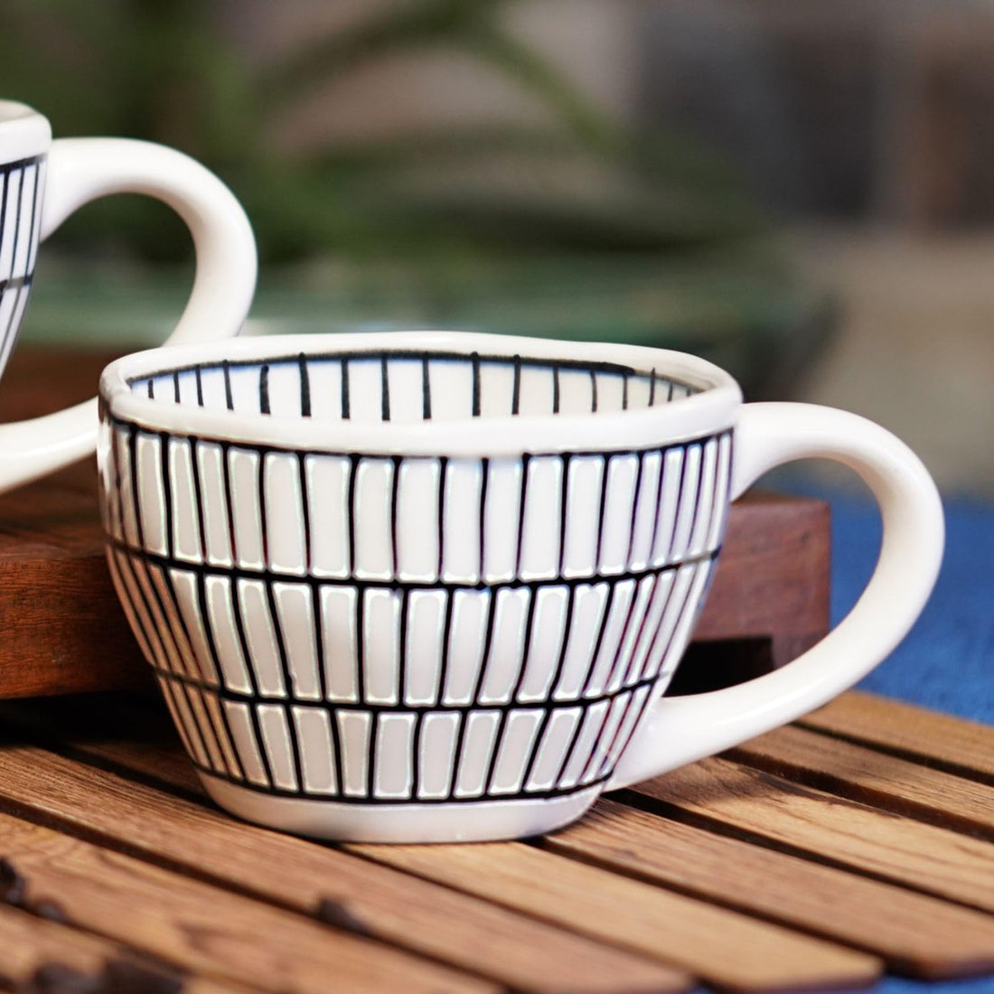 Freakway "Chevron Waves Set of 2 Handcrafted Ceramic Coffee Mug Set of 2 (300 ML, Microwave Safe & Dishwasher Safe) - Ceramic Coffee Mugs for Tea Mugs Set Ceramic Mugs Milk Mug Pottery Mugs