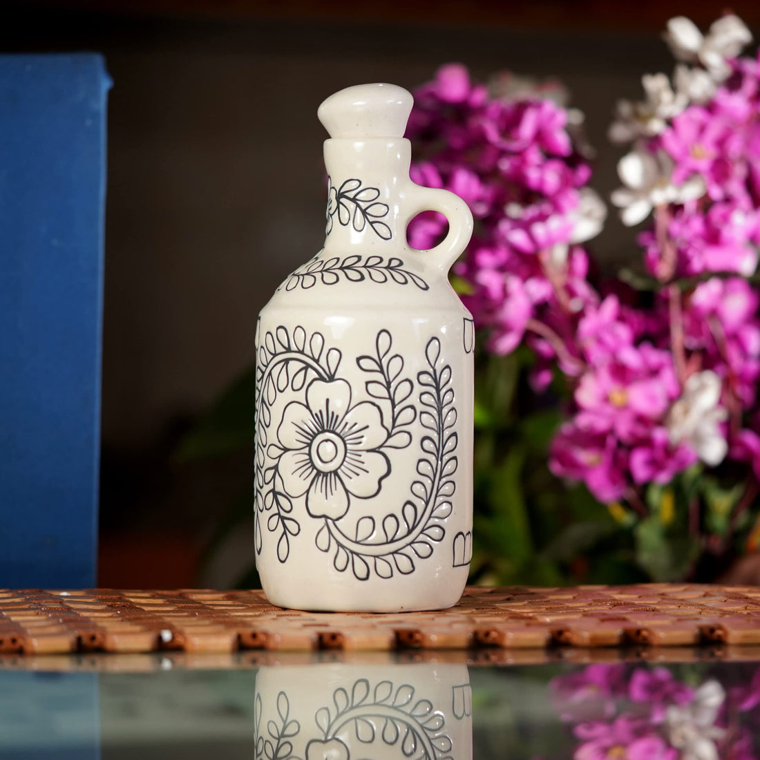 Ceramic Blue Floral Art 1000 Ml Oil Dispenser for Kitchen, Oil Bottle, Oil Sprayer, Vinegar Bottle for Kitchen Storage/ 100% Food & Microwave Safe| 1 Piece-Off White