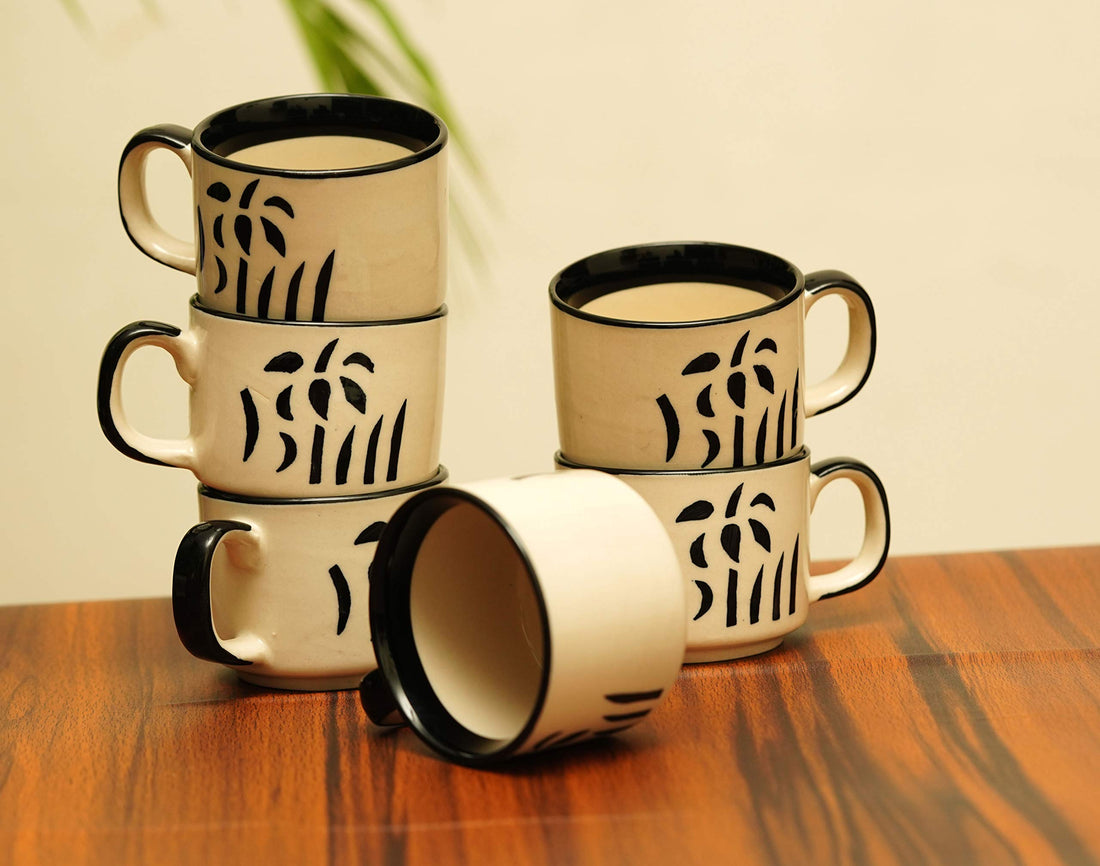 Freakway Hand-Painted Studio Pottery Tea/Coffee Cups in Ceramic (Set of 6, Microwave Safe)