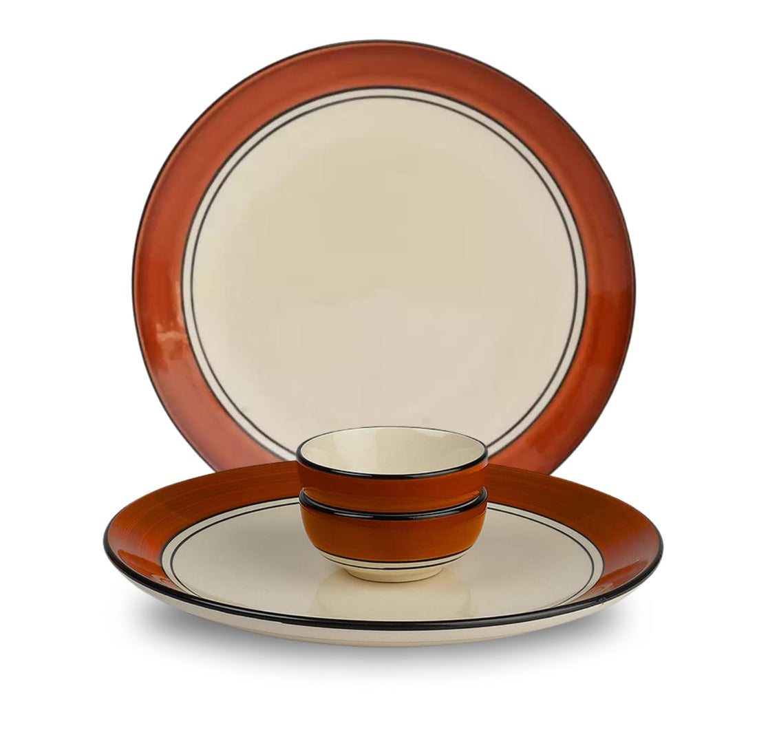 Freakway Glossy Finish Brown and White Handcrafted Dinner Set Ceramic Stoneware Dinner Set of 4 Pieces | 2 Dinner Plates & 2 Serving Bowl | Dishwasher & Microwave Safe - Multicolor