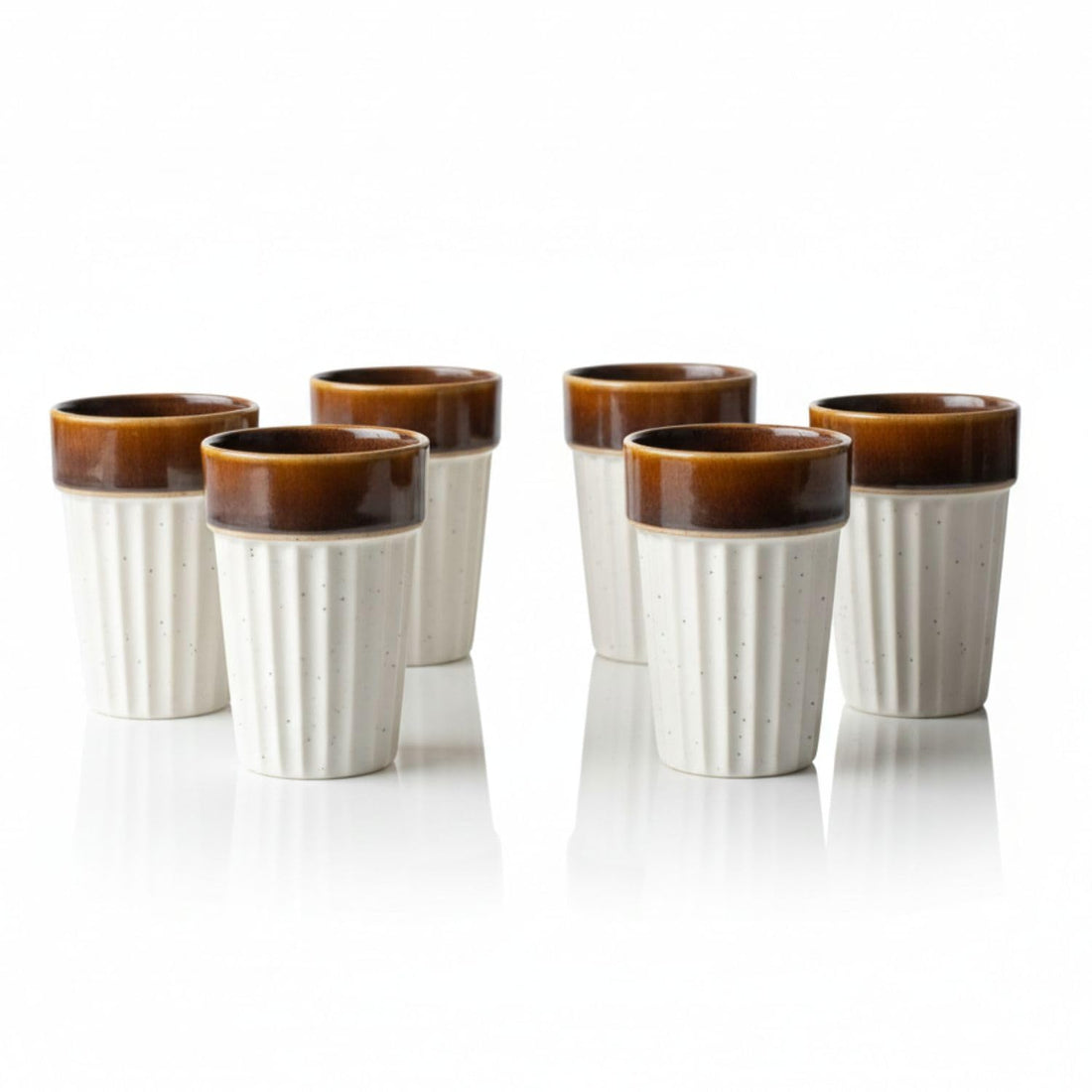 Freakway Artisanal Dual-Tone Ceramic Kullad Tea Cups (Set of 6, 150ml) – Traditional Ribbed Chai Mugs with Glossy Brown Rim | Microwave & Dishwasher Safe