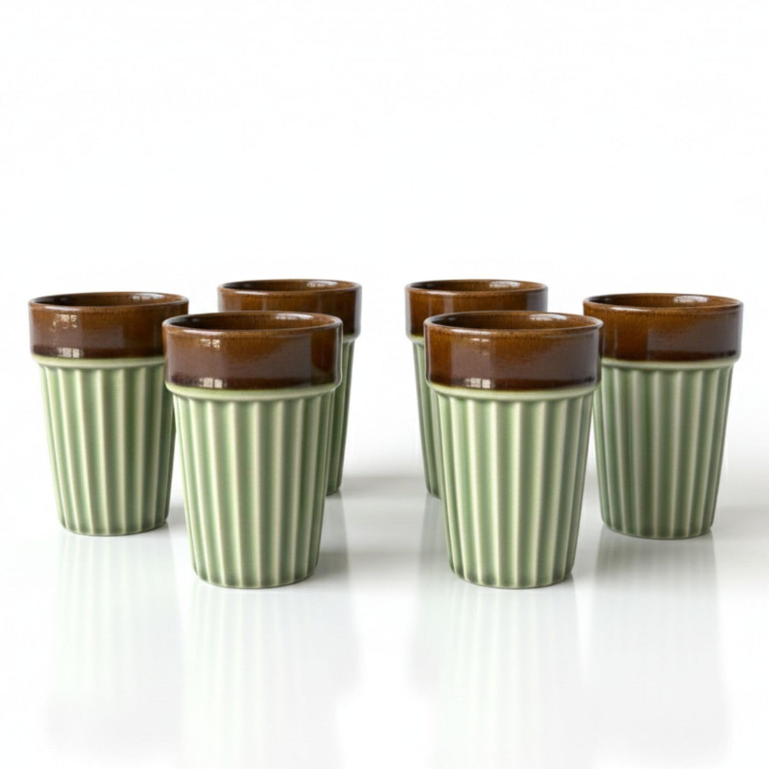 Freakway Premium Ceramic Kullads Set, Traditional Indian Design Tea & Coffee Cups, Mint Green & Brown, 100ml Fluted, Microwave & Dishwasher Safe, 6 Pack