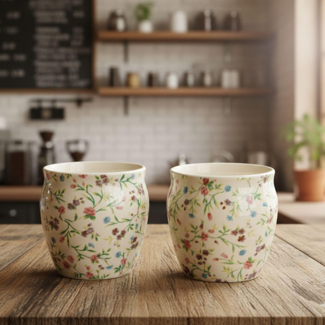 Freakway Hand-Painted Ceramic Floral Kullad Set, Multicolor Tea Cups, Set of 2
