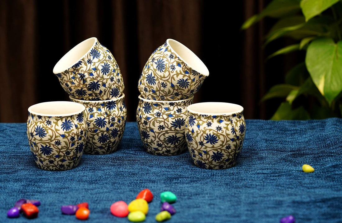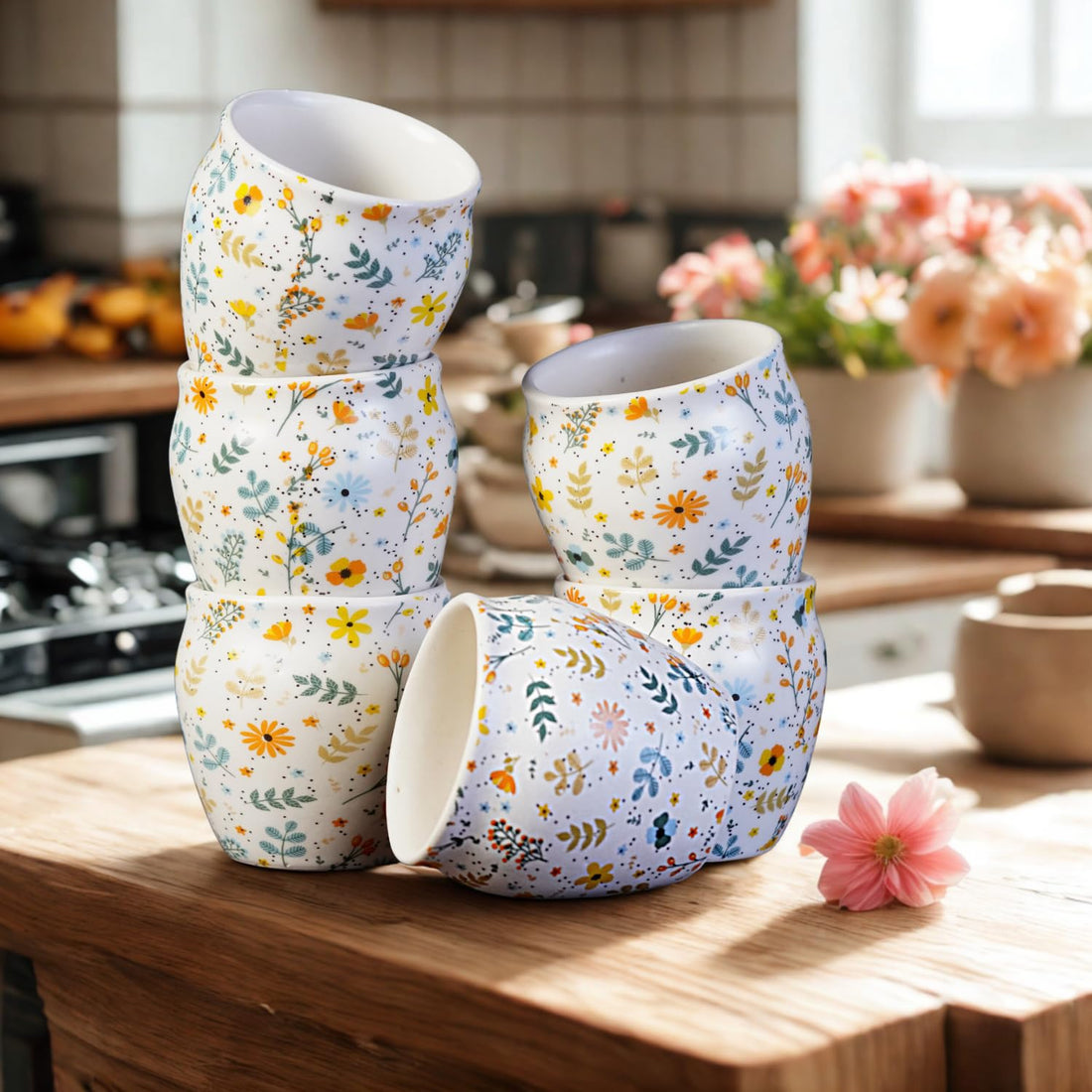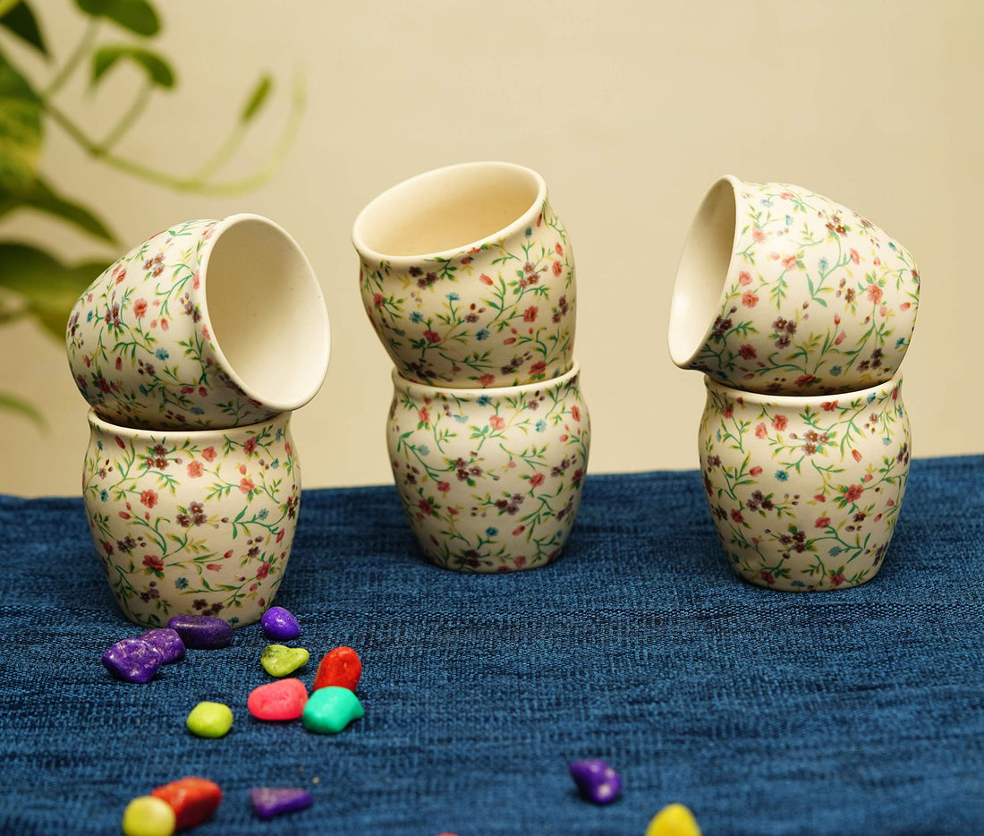 Brand: FreakwayColor: Multicolor - Cream Base With Floral PatternFeatures: Premium Ceramic Construction: Set of 6...