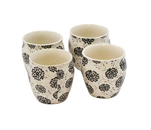 Freakway Hand-Painted Ceramic Floral kulhad Set of 4 Cups |kullad Tea Set | kulhad chai Cups | Hand Painted kulhad Coffee Mug,-Color-Black & White