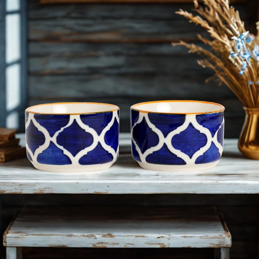 Freakway Handpainted Moroccan/Umrao Pattern Ceramic Dip Bowl/Chutney Bowl/Pickle Bowl/Sauce Bowl/Small Katori Set in Round Shape (40 ML, Small, Set of 2)