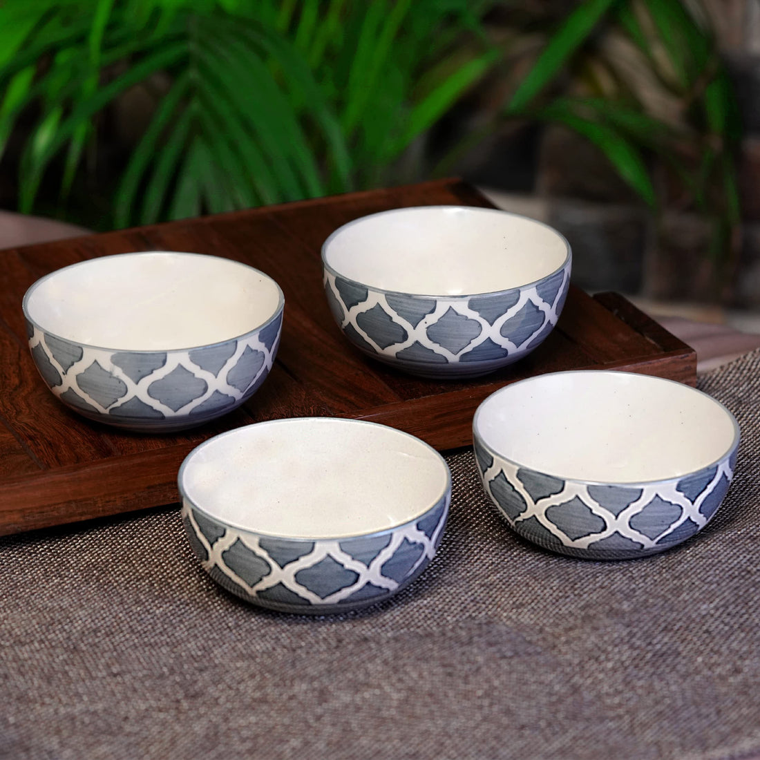 Freakway Hand-Painted Moroccan Glossy Grey & White Ceramic Bowl Set of 4 (200ml) | Small Serving Soup Bowls, Cereal Bowl, Pasta Bowls | Dishwasher & Microwave Safe