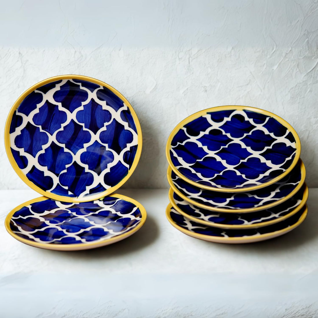 Freakway Hand-Painted Stoneware Moroccan Premium Ceramic 7-inch Quarter/Small Plate Set of 6 Pcs | Bone Ash Free | Microwave and Dishwasher Safe - Blue
