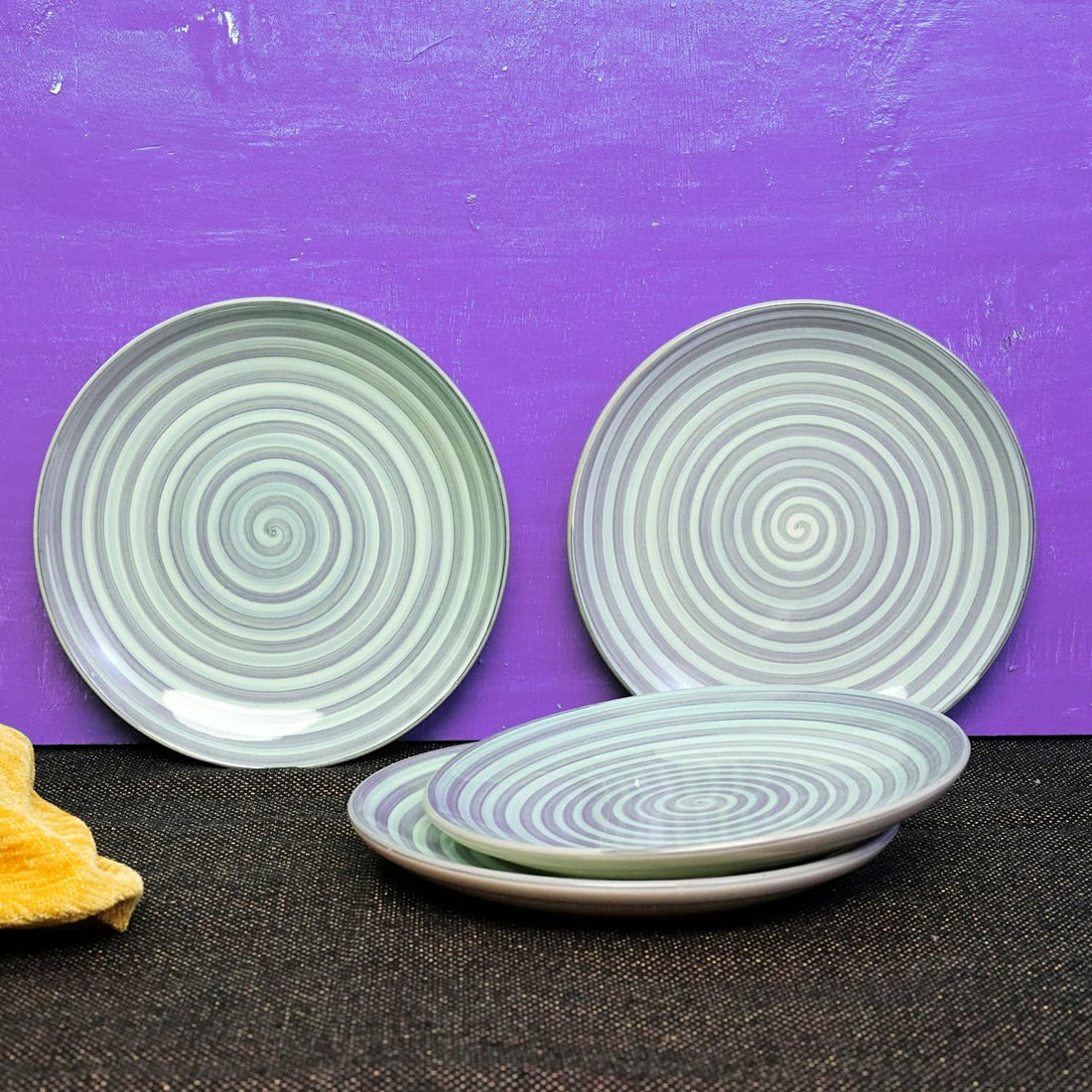 Freakway Hand-Painted 'sea Swirls' Ceramic Quarter Plates Side Plates - 7.3 Inch Set of 4 Pieces Serving Platter Plates for Snacks & Dinner | Microwave & Dishwasher Safe | Green