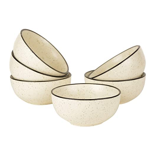 Freakway Hand-Painted White Ceramic Black Dotted Speckled Bowl Set of 6 (200ml) | Small Serving Soup Bowls, Cereal Bowl, Pasta Bowls | Dishwasher & Microwave Safe - Off White