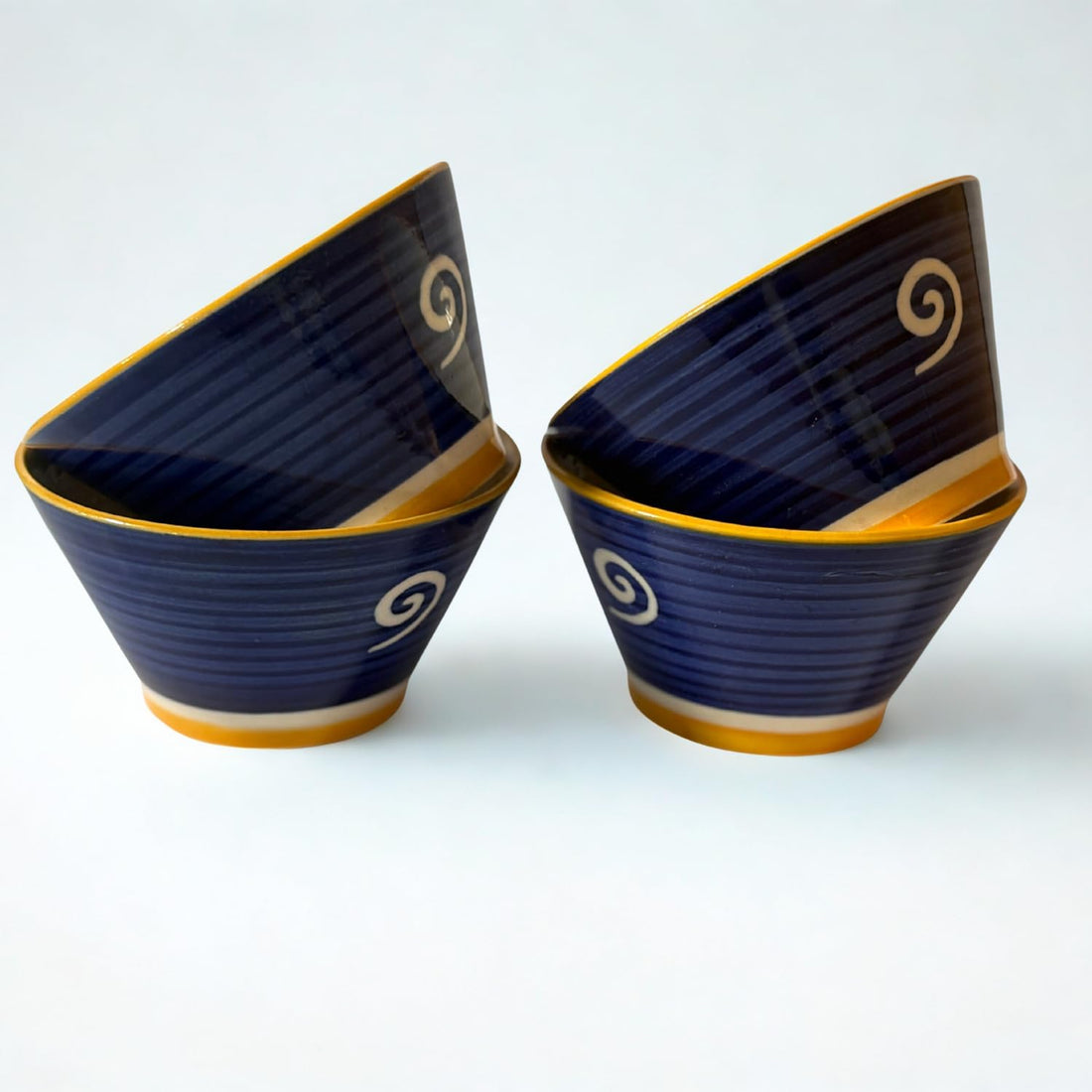 Freakway Handcrafted Ceramic Bowls Set of 4 – Spiral Design, Deep Blue with Yellow Rim – Microwave & Dishwasher Safe-200 ML