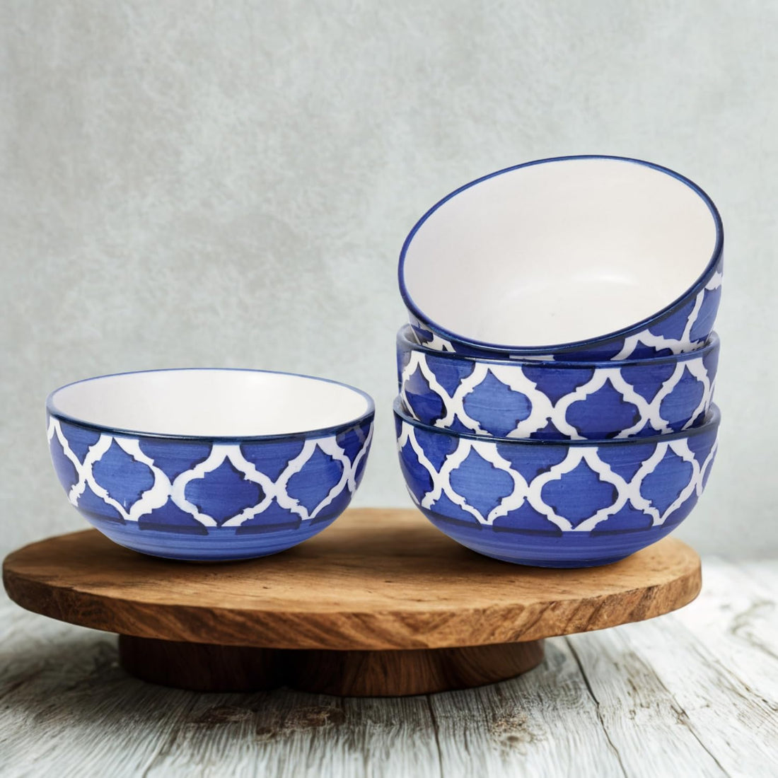 Freakway Handcrafted Blue & White Patterned Ceramic Bowls – Pack of 4