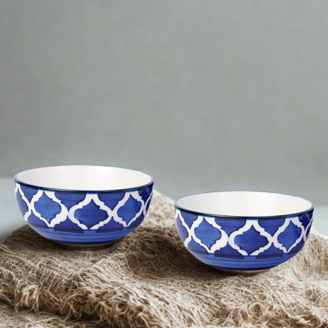 Freakway Handcrafted Blue & White Patterned Ceramic Bowls – Pack of 2