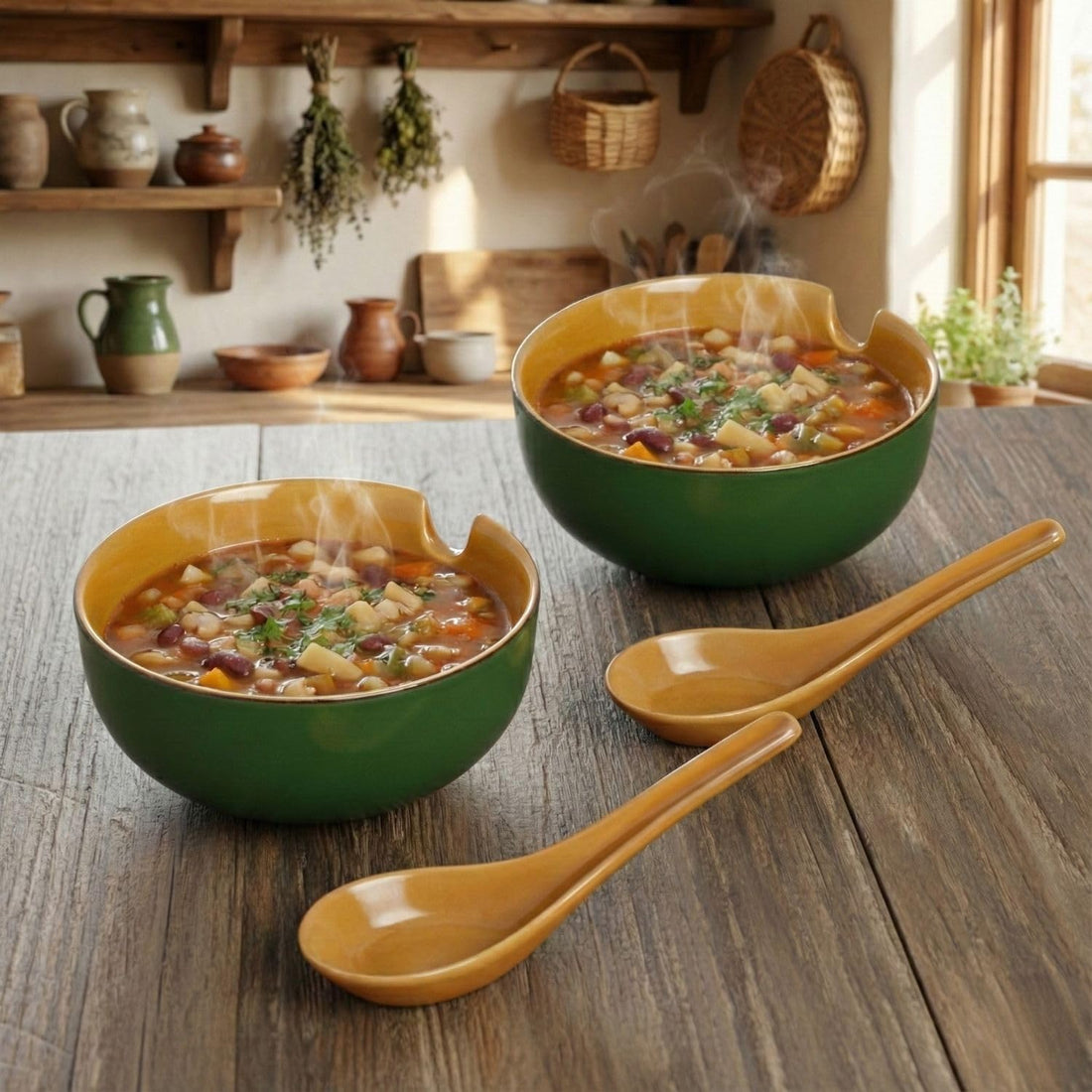 Freakway Ceramic Soup Bowl Set with Spoon, Set of 2, 300ml | Soup Mug/Cup | Glossy Finish | Microwave Safe (Soup Cup Set of 2 - Teal Green)