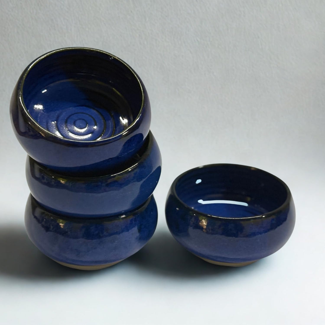 Freakway®Studio Pottery Blue Glazed Ceramic Bowls – 4 Pc Set for Snacks, Sides & Desserts