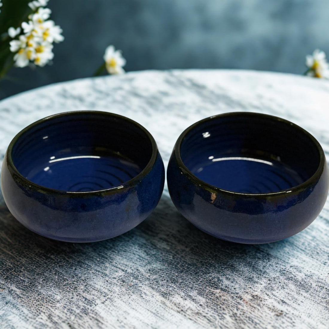 Freakway®Studio Pottery Blue Glazed Ceramic Bowls – 2 Pc Set for Snacks, Sides & Desserts