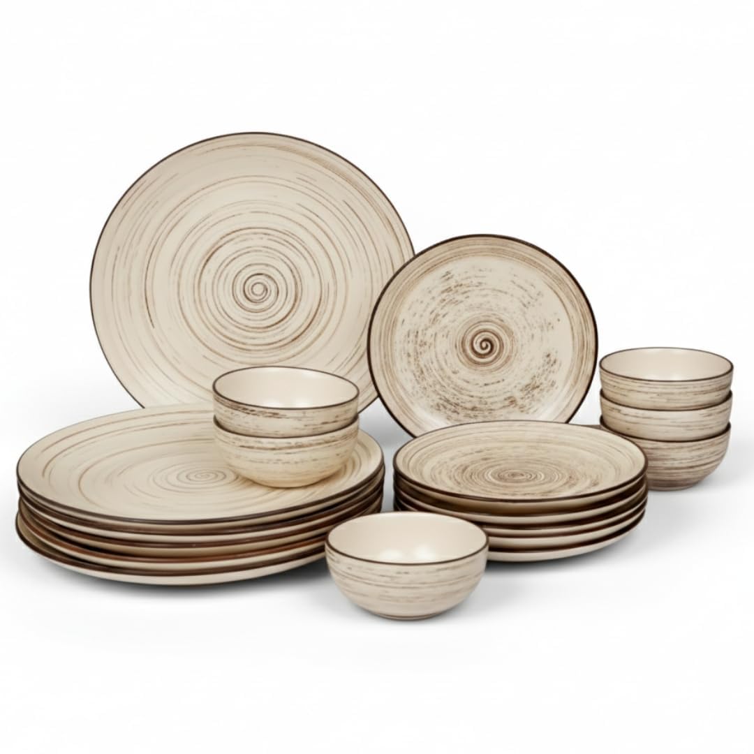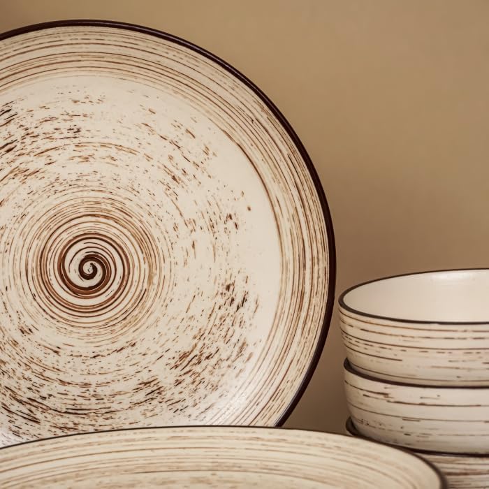 Ceramic Dinner Set, Twist Brown, 18 Pieces