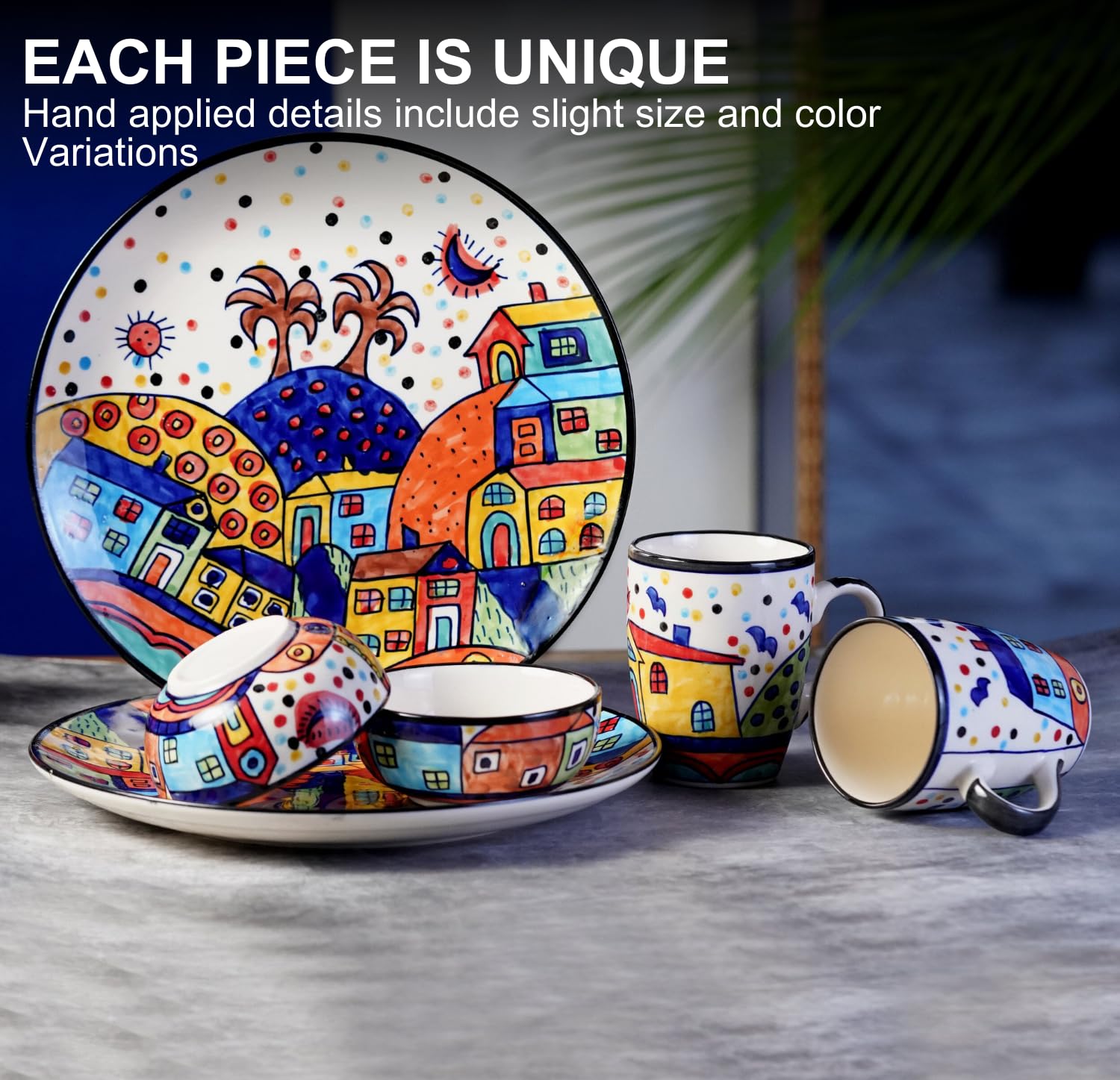 - ★【 EASY TO CLEAN 】These dinner plates with katoris are ideal for serving daily meals to your family & guests.& Useful for dinnerware sets and sets of supper plates and bowls Hand-painted with a hut pattern.
