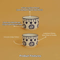 Details: - The hand-painting on the ceramic will not wear away. - This is not a Bone China product. - There could be a slight variation in the glazing/color/finish on the product, as the glazing is done inside the furnace fired at 1200 degree celsius to make the product sturdy and due to the natural property of the studio glaze it is impossible to predict the color of the glazing/finish which will eventually come on the product after the firing process.